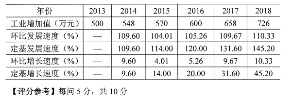 (2)2014年~2018年各年工业增加值的环比增长速度和定基增长速度。