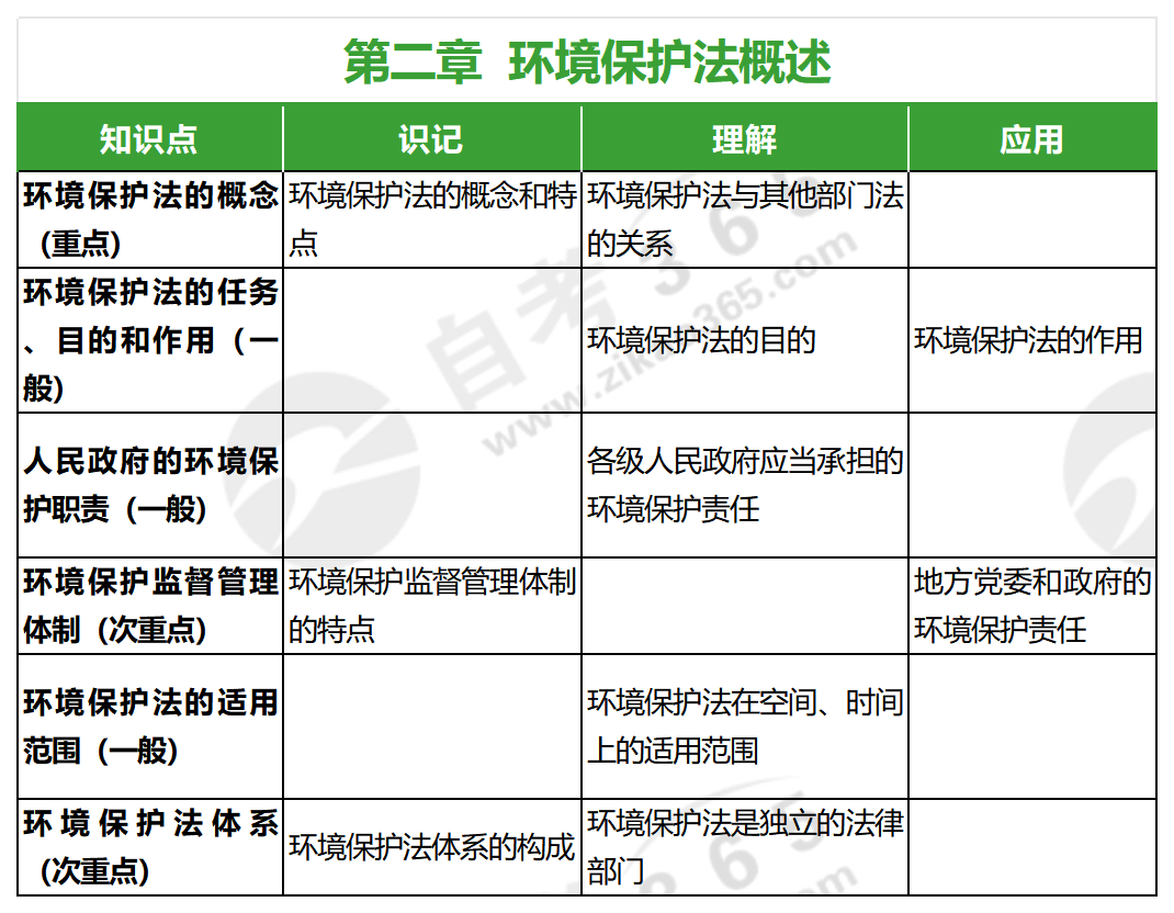 备考自考环境资源法学,如何高效复习?关键在于紧扣考试大纲。大纲清晰标注了各知识点的考核要求,涵盖识记、理解、应用三个层次。