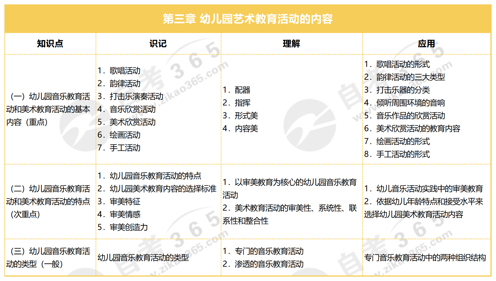 自考学前儿童艺术教育知识点框架:第三章 幼儿园艺术教育活动的内容