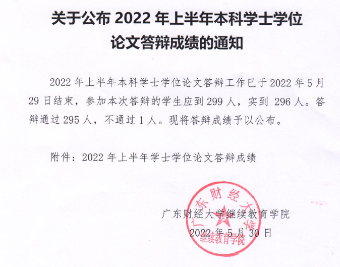 附件:2022年上半年广东财经大学自考学士学位论文答辩成绩