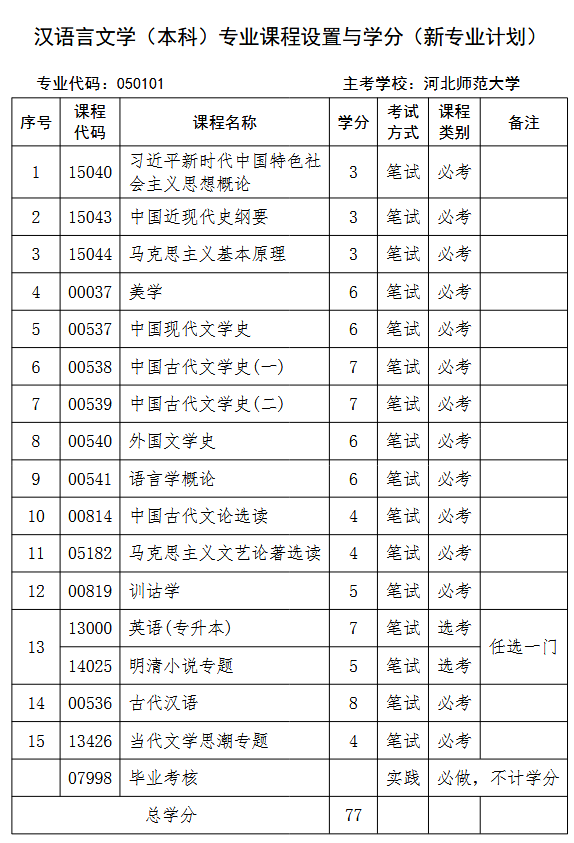 凡取得本专业考试计划规定的14门课程的合格成绩,累计达到74学分,毕业考核达到规定要求,思想品德经鉴定符合要求者,颁发高等教育自学考试汉语言文学专业毕业证书。其学业水平达到国家