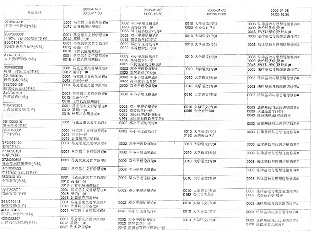 辽宁省2006年1月高等教育自学考试考试课程安排(二)