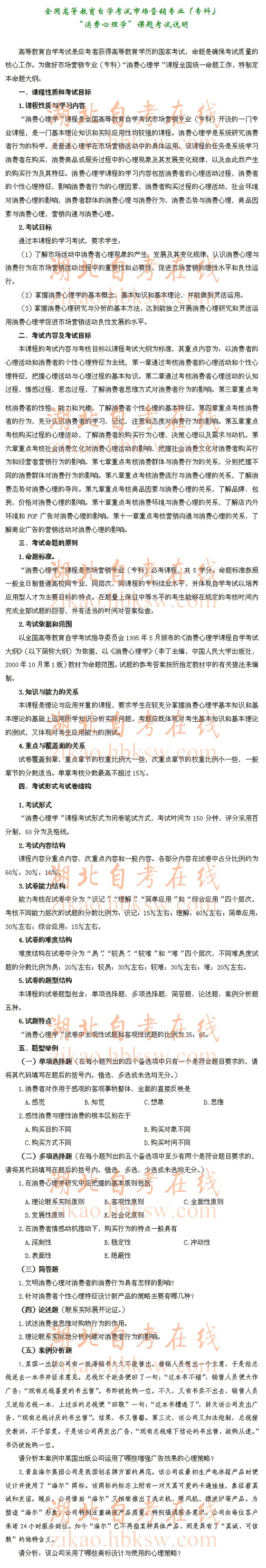 自考“消费心理学”(0177)考试说明