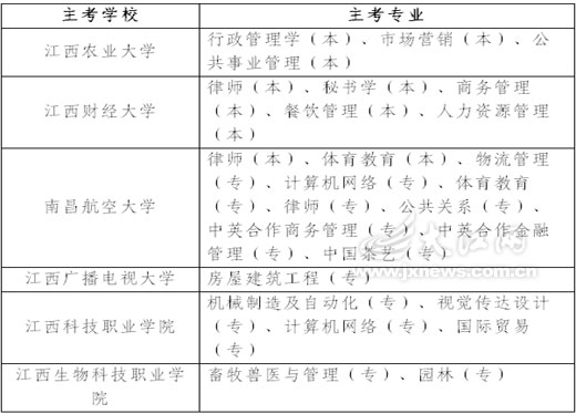 此外,今年江西有6所学校获批增设部分高等教育自学考试本(专)科主考专业,分别为:江西农业大学3个本科专业、江西财经大学5个本科专业、南昌航空大学2个本科专业和8个专科专业、江西广播电视大学1个专科专业、江西科技职业学院4个专科专业、江西生物科技职业学院2个专科专业。