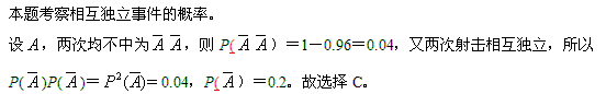 1、[2011·10]已知一射手在两次独立射击中至少覆盖目标一次的概率为0.96,则该射手每次射击的覆盖率为( )。