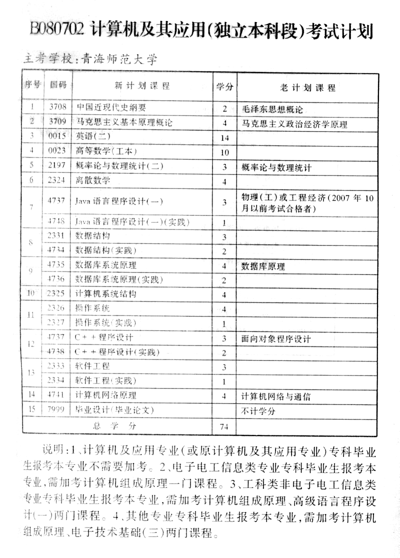 青海2013年自考计算机及其应用(独立本科段)考试计划