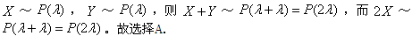 设随机变量X和Y相互独立,且都服从参数为λ的泊松分布,则X+Y与2X的关系是