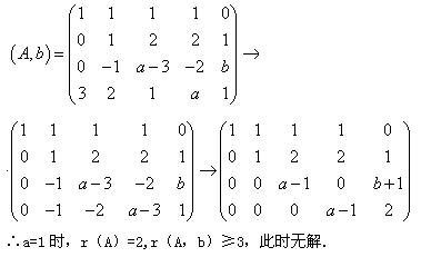 1.a,b为何值时,上述非齐次线性方程组无解( )。