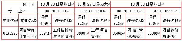 经研究决定,现将项目管理专业(专科)、(独立本科段)2011年10月非学历证书课程考试安排通知如下: