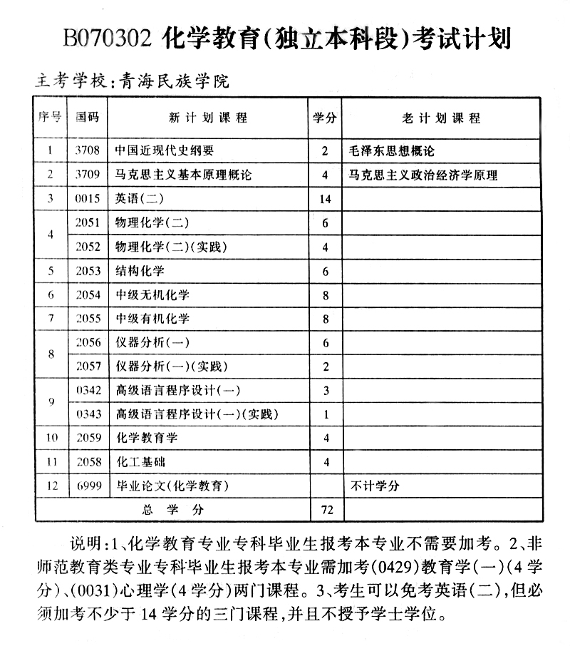 2015年青海自考化学教育(独立本科段)考试计划