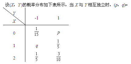 答案解析:,,,因为X与Y相互独立,所以P{X=2,Y=-1}=P{X=2}P{Y=-1},P{X=2,Y=1}=P{X=2}P{Y=1)即及,分别解得,故选择C。
