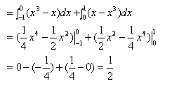 y=x与y=x3 的交点为(-1, -1), (0, 0), (1, 1)∴A=A1+A2