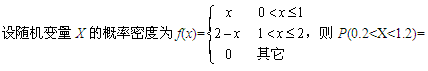 答案解析:本题考核应用连续型随机变量的概率密度求随机变量x在区间[a,b]上概率的性质,所以,本题概率为=。答案:C。