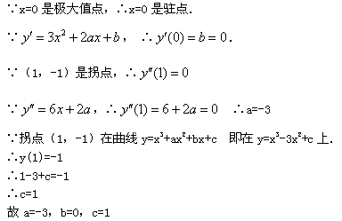 1. y=x3+ax2+bx+c的拐点为(1,-1),且在x=0时取极大值,那么a,b,c( )