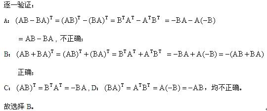 答案解析: 本题考查反对称矩阵的定义。