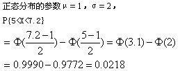 设X服从正态分布N(1,4),则P(5<X<7.2)=( )