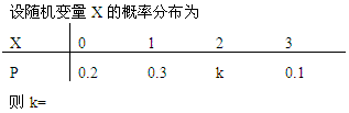 答案解析:本题考察一维离散型随机变量分布律的性质:。计算如下0.2 + 0.3 + k + 0.1=1,k=0.4,故选择D。