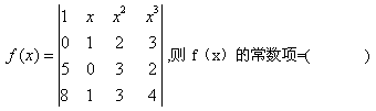 答案解析:本题考查代数余子式的计算。f(x)的常数项就是第一行第一列元素1的代数余子式A11=1