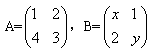 答案解析:本题考查矩阵的计算。把AB和BA分别求出来,令矩阵中对应的元素相等即可解出。