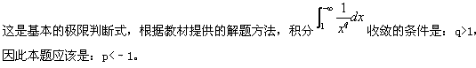 [2012.7]如无穷极限反常积分收敛,则p的取值范围( )