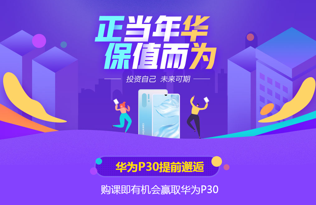 活动时间及规则:4月21日-4月23日,支付1000元定金,在4月24日支付尾款,最终全款购买高端定制班课程,有机会获得华为P30/P30 pro手机优惠券,越提前购买获得优惠券的可能性越高哦!