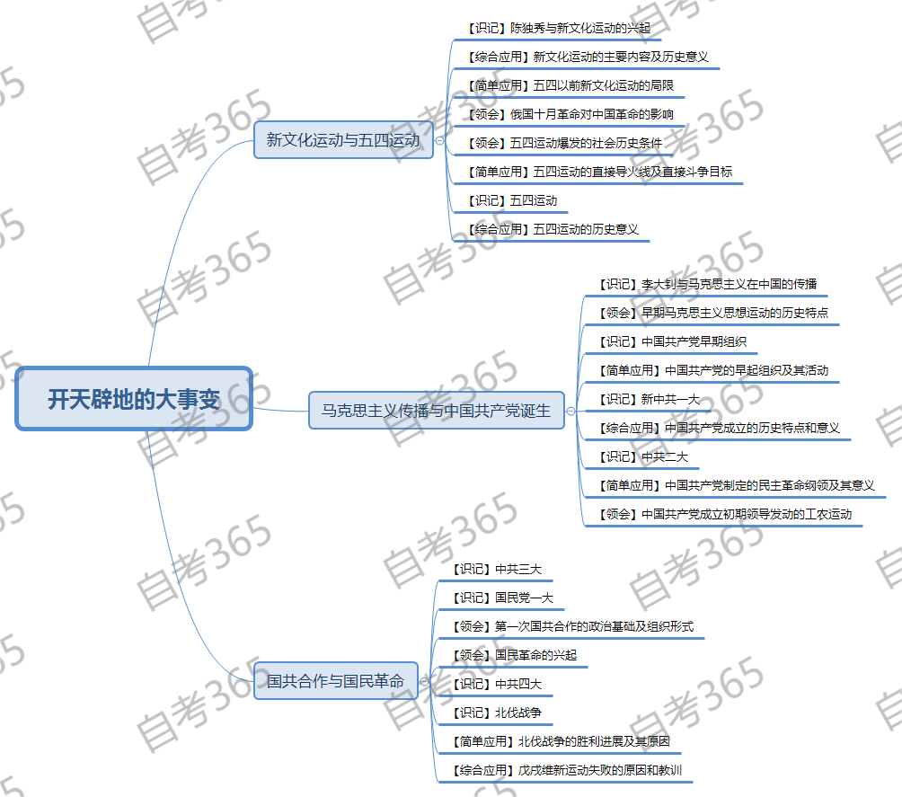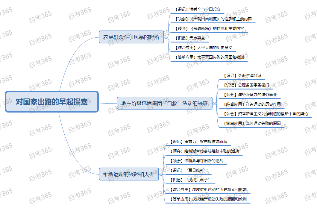 为此,自考365网校老师整理了自考公共科目《中国近现代史纲要》各章节的思维导图,大家赶紧保存收藏吧!