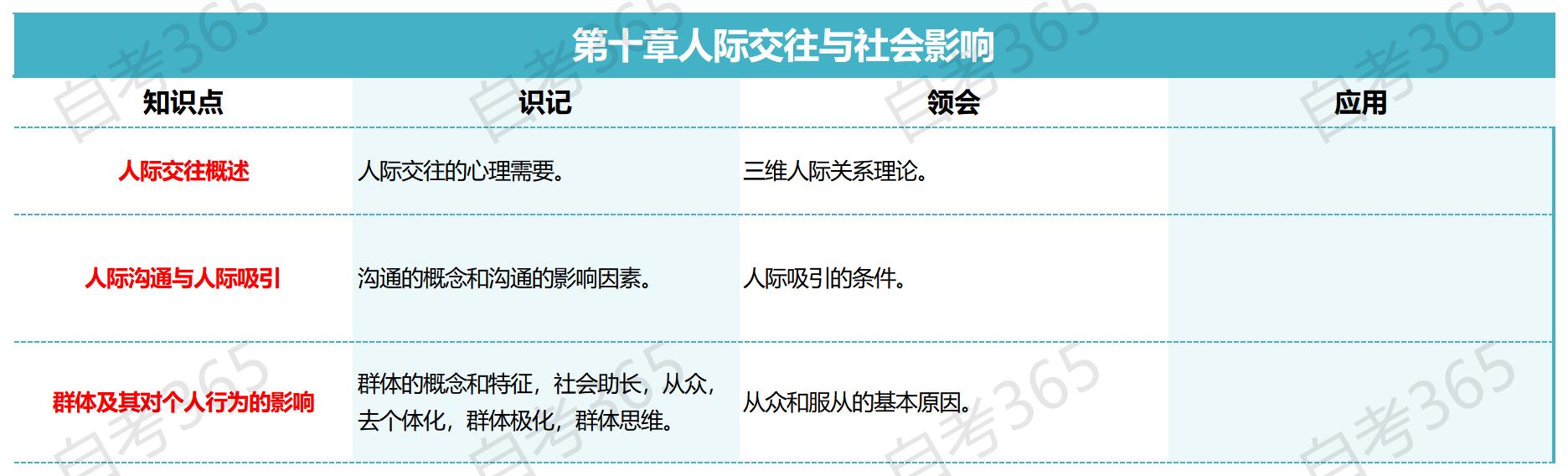 在备考2024年自考心理学之前,我们需要知道心理学这门科目的复习框架,了解哪些知识点需要重点复习,是必须要识记、要理解、要学会综合应用的,下面就让我们一起来看一下自考心理学第十章-人际交往与社会影响的复习框架吧!